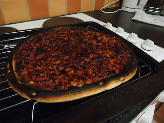 Later that evening we went to grab dinner and ended up getting a frozen pizza for all of us to share! We put it in the oven double checked we were working in *C ... we were golden. That's the color of the pizza we wanted until for some reason it turn black. Just the top! But due to the fact we're poor college kids in a foreign country, we ate it.